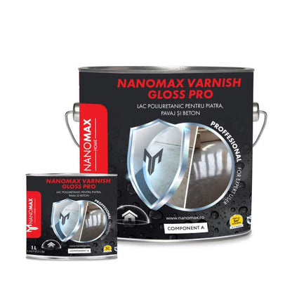 Nanomax Varnish PU Gloss, Lac Polyurethane Beton-is a high-quality nano-polymer varnish, a product intended for the decoration and protection of pavement, stone, concrete, brick or other porous substrates.